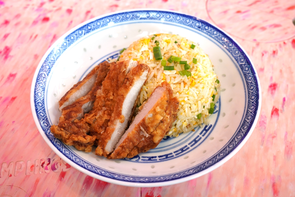 4. Pork Chop Fried Rice (195+ THB) [14/20] – ข้าวผัดไข่แบบจีนเสิร์ฟคู่กับพอร์คช็อปชุบแป้งทอด