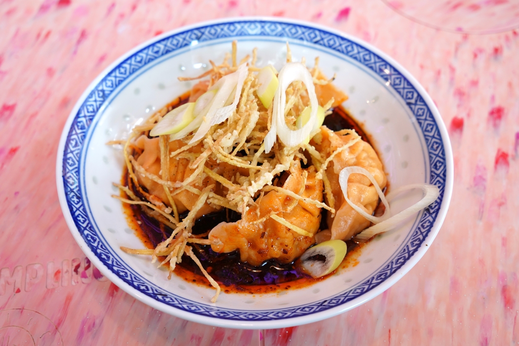 3. Yuzu Mala Shrimp Dumplings (215+ THB) [14/20] – เกี๊ยวกุ้งในซอสน้ำส้มสายชูยูซุและซอสเสฉวนหน้าขิงทอดกรอบและต้นหอม