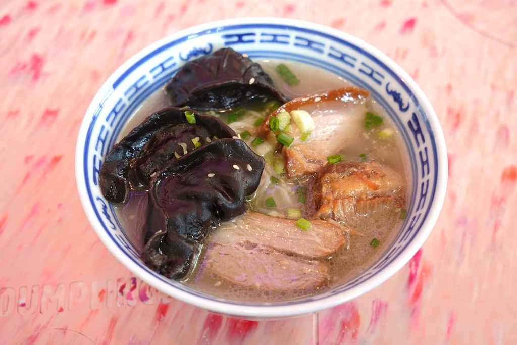 6. Jiaozi Combo (185+ THB) [14/20] – บะหมี่น้ำใสแบบข้นๆคล้ายๆซุปราเมนทงคตสึเสิร์ฟคู่กับเกี๊ยวหมูสับผสมเห็ดและหมูสามชั้น