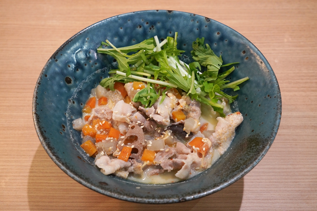 2. Pork Sesame Soybean Ramen (250+ THB) [12/20] – ราเมนในซุปถั่วเหลืองงาขาวทานคู่กับหมูสไลด์และผักต้มจนเปื่อยหลากชนิด