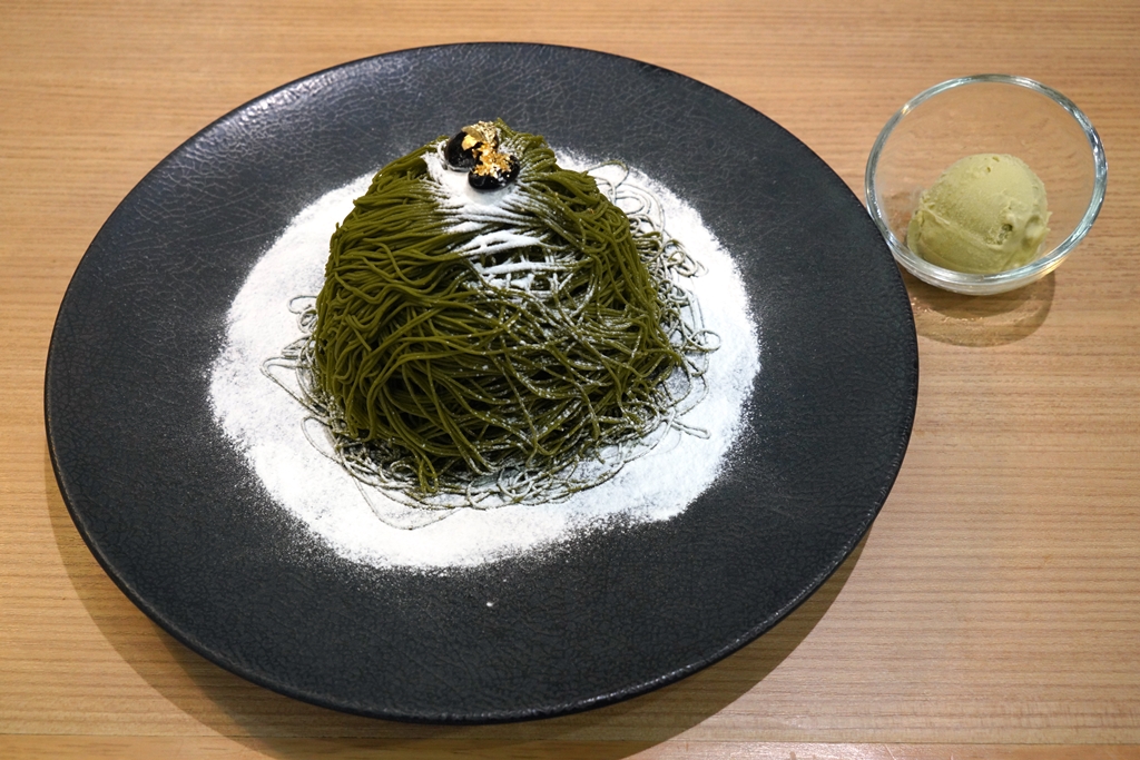 4. Hekira (395+ THB) [14/20] – ขนมหวานซิกเนเจอร์ธีมชาเขียวกับเกาลัดที่มีส่วนประกอบมากมาย ทั้ง ไอศกรีมเซนฉะ เค้กมัตฉะ เมอแรงก์ วิปครีม ข้าวพองและครีมมัตฉะเกาลัดเป็นเส้นๆ