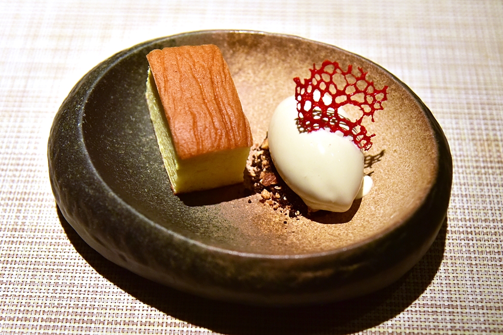 14th course: Tamago Baked – ไข่ตุ๋นผสมเนื้อปลาเนื้อนุ่มเด้งเหมือนเค้กเสิร์ฟคู่กับไอศกรีมรอยัลมิลค์ที