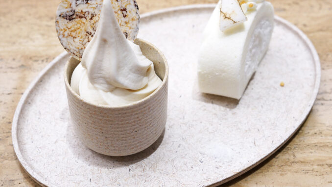 1. Cocorice Roll (285 THB) [16/20] – โรลเค้ก “ข้าวสังข์หยด“ จากจังหวัดพัทลุงสอดไส้ครีมข้าวผสมมะพร้าว ข้าวเหนียวเปียกและเนื้อมะพร้าวอ่อนเสิร์ฟคู่กับไอศกรีมซอฟต์เสิร์ฟรสข้าวสังข์หยดที่หอมอร่อยมากๆท็อปด้วยแป้งข้าวเกรียบกรอบจากข้าวสามสายพันธุ์