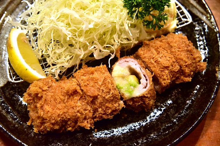 2. Hire Avocado Ebi Cheese Set (300+ THB) – หมูสันในชุบเกล็ดขนมปังทอดสอดไส้เนื้อกุ้ง อโวคาโด้และชีส เป็นเมนูที่แปลกดีทีเดียวครับ รสชาติของส่วนผสมก็เข้ากันได้อยู่นะ