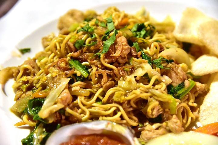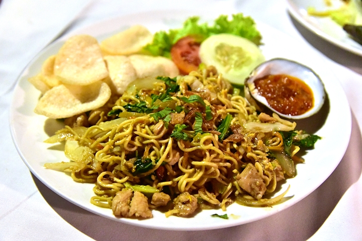 4. Mie Goreng (Rp. 62.000) – ผัดหมี่โกรงรสมันๆเสิร์ฟคู่กับน้ำพริกแซมบัลและข้าวเกรียบ