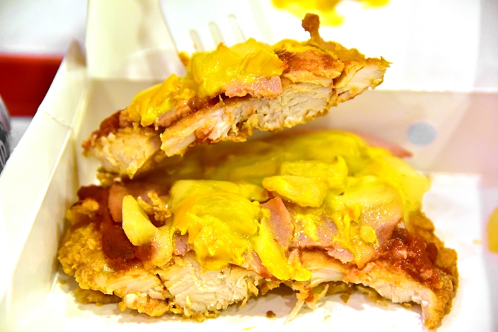 1. Chizza Meal (8.00 SGD) – เซ็ตไก่ทอดหน้าพิซซ่าฮาวายเอี้ยนชิ้นใหญ่พร้อมด้วยเครื่องดื่มและเฟรนช์ฟรายส์
