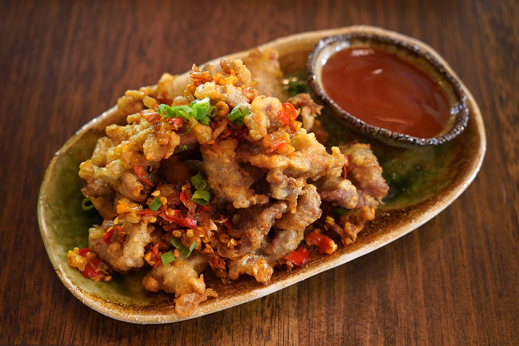4. สันคอหมูคั่วพริกเกลือ (105 THB) [14/20] – สันคอหมูชุบแป้งทอดคั่วกับพริกเกลือรสเค็มๆที่เป็นเครื่องเคียงชั้นดีสำหรับข้าวซอย