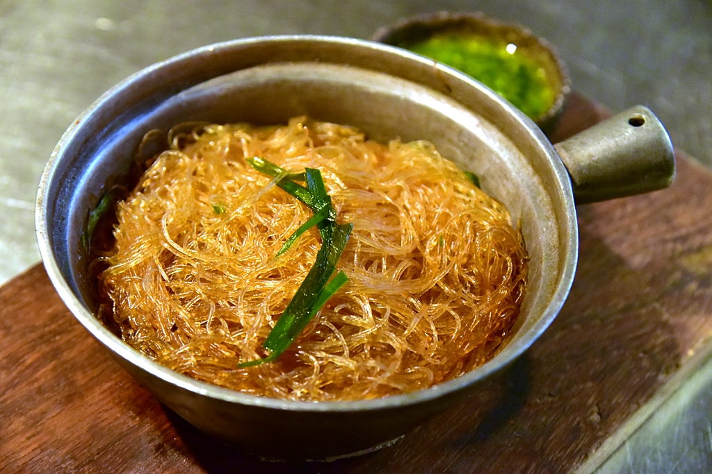 7. Clay Pot Baked Glass Noodles Tamworth Belly & Brown Crab Meat (6.75 GBP) – วุ้นเส้นอบมันหมูและเนื้อปูที่หอมอบอวลมากๆ ตัวเส้นนี่สุกแบบกำลังดีมากๆ รสชาติจะออกหวานๆ ตัวซอสรสเปรี้ยวๆเข้ากันได้ดี