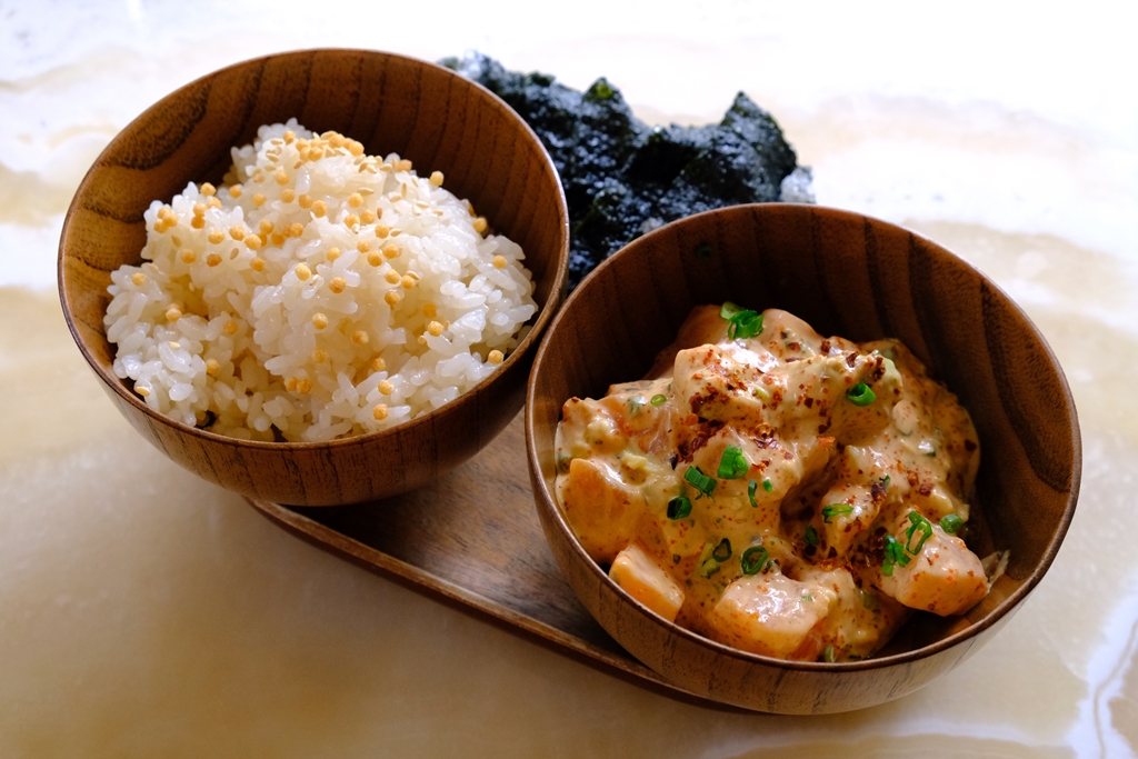 3. DIY Salmon Temaki (450++ THB) [15/20] – เทมากิแบบ DIY ที่เสิร์ฟแซลม่อนดิบหั่นเต๋าคลุกซอสมาโยไข่ปลาพร้อมด้วยข้าวซูชิและสาหร่ายกรอบ