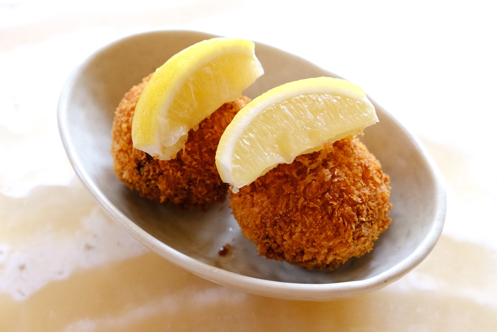 1. Ebi Croquette (260++ THB) [13/20] – คร็อกเก็ตไส้ครีมเนื้อกุ้งกับหอมใหญ่และแครอตเสิร์ฟคู่กับเลม่อน