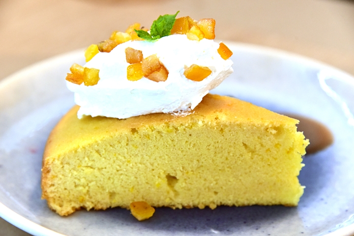 4. Almond Cake (190+ THB) – อัลมอนด์เค้กเนื้อแน่นทานคู่กับแยมเปลือกส้มรสเข้มข้นและครีมแบบเน้นๆ