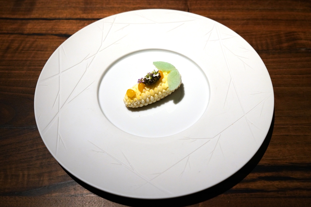 10th course : PASAR MALAM | WAXY CORN [16/20] – ไอศกรีมบราวน์บัตเตอร์และข้าวโพดหน้าไข่ปลาคาเวียร์เสิร์ฟคู่กับวาราบิโมจิและป็อปคอร์น โดยวิธีการทานก็คือให้คลุกทุกอย่างเข้าด้วยกัน