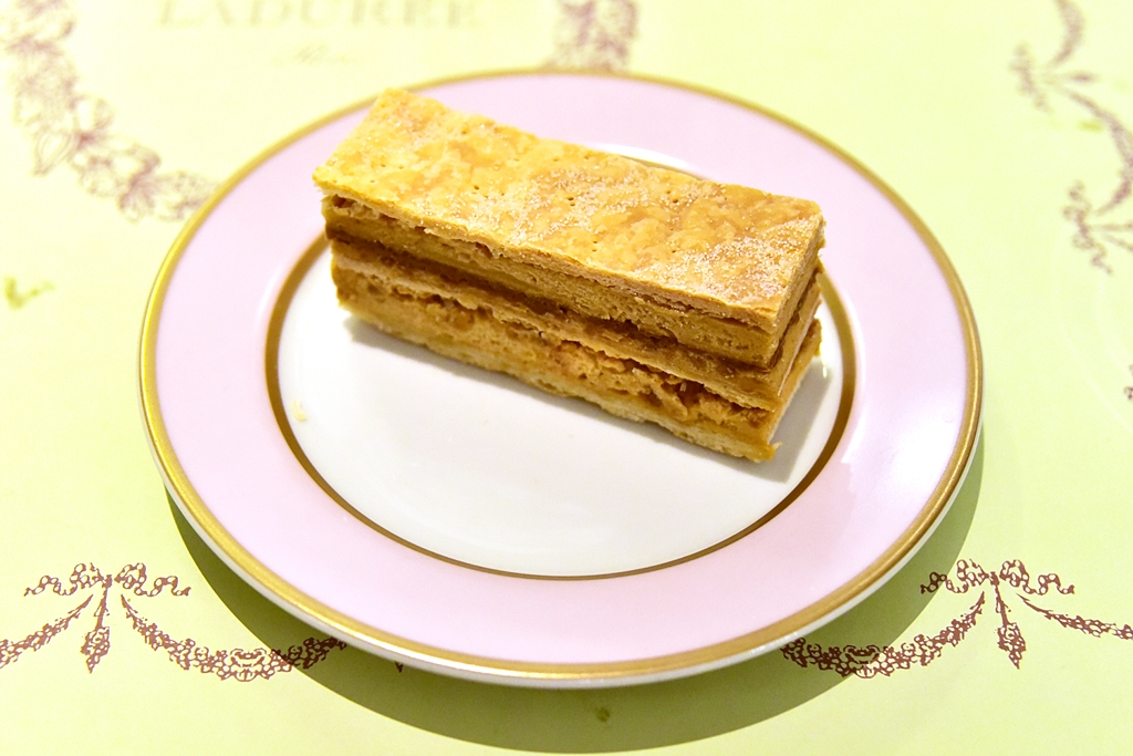 8. Millefeuille Praline (290++ THB) – มิลเฟยแป้งกรอบสอดไส้พราลีนเนื้อหวานมันหลากชั้นหลากสัมผัส เป็นเมนูขนมหวานที่เข้ากับชาร้อนมากๆ