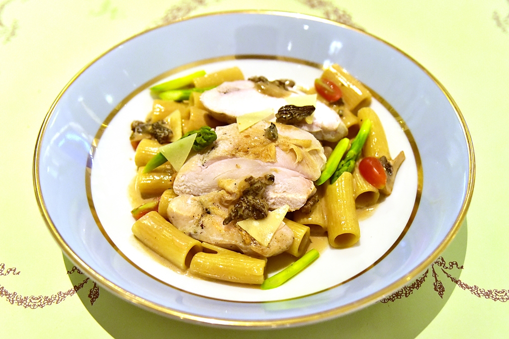 4. Rigatoni Morel (450++ THB) – พาสต้าเส้นใหญ่แข็งในซอสครีมเห็ดโมเรล หน่อไม้ฝรั่งและเนื้ออกไก่นุ่ม