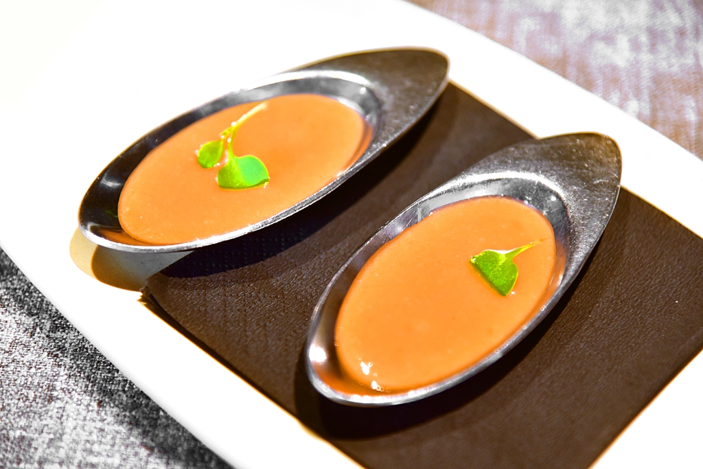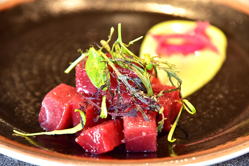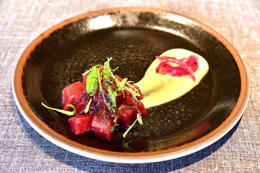 4. Tuna Raw in Dice with Avocado Soup (15.00 EURO) – ทูน่าหั่นเต๋าเนื้อสดหวานเสิร์ฟเย็นกับซุปอโวคาโดรสชาติเข้ากันได้ดี
