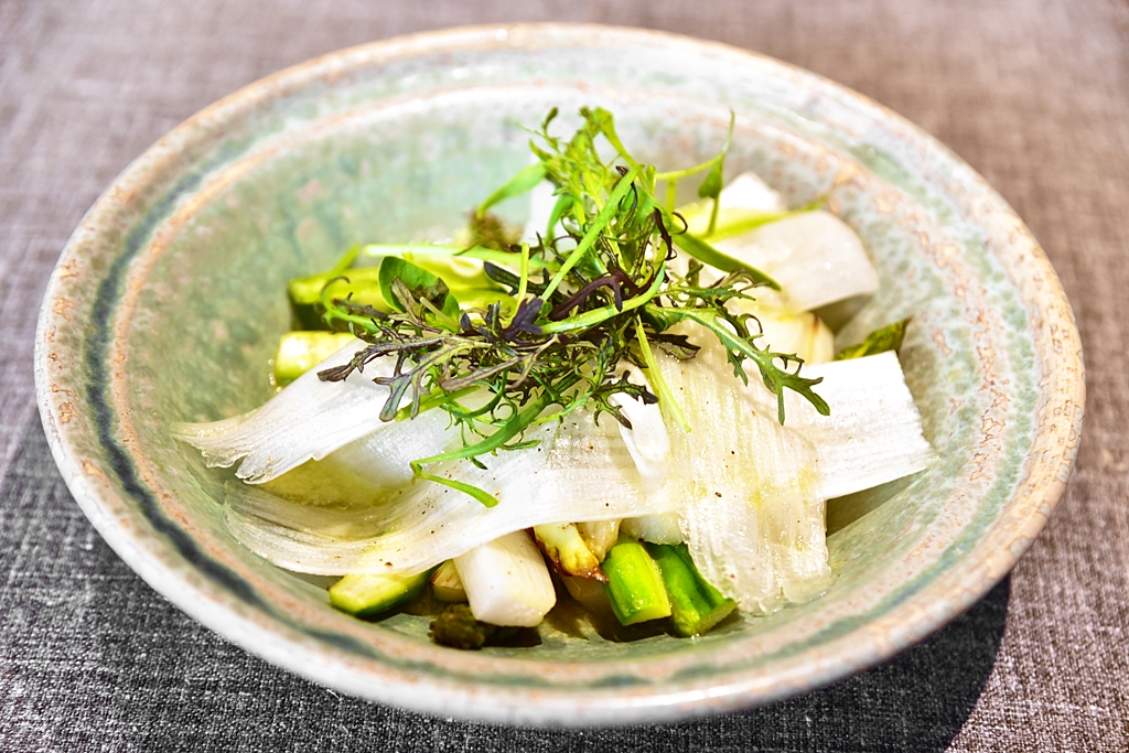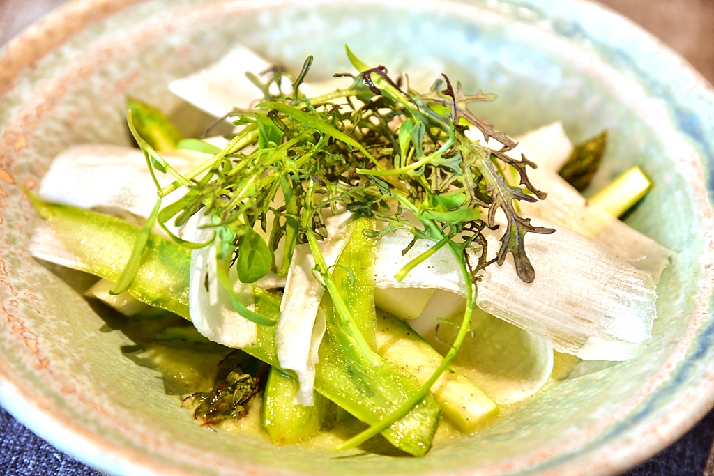 3. White & Green Asparagus with Egg Yolk Juice (10.50 EURO) – หน่อไม้ฝรั่งสีเขียวและสีขาวหลายรสสัมผัสเสิร์ฟในซอสไข่ขาว