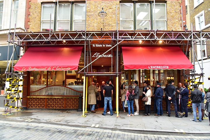 Le Relais De Venise นั้นได้รับความนิยมเป็นอย่างมากทั้งในฝรั่งเศส สหรัฐอเมริกาและในมหานครลอนดอนที่ผมไม่รีรอนัดเพื่อนมาทานสเต็กจิบไวน์กัน ความน่าทึ่งอย่างแรกของร้านคือการต่อคิวของลูกค้าที่ยาวใช่ย่อยตั้งแต่ร้านเปิดใหม่ๆ บรรยากาศร้านที่ดูคลาสสิคและแออัดสุดๆ พร้อมด้วยสาวเสิร์ฟที่แตกตัวในชุดโบราณที่เข้ากับบรรยากาศได้ดี
