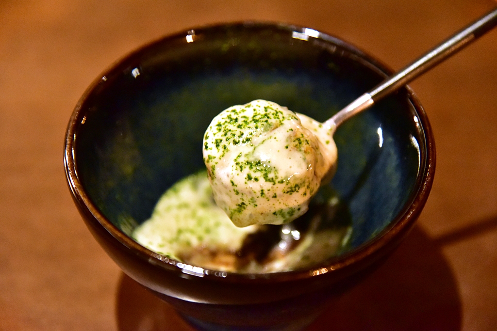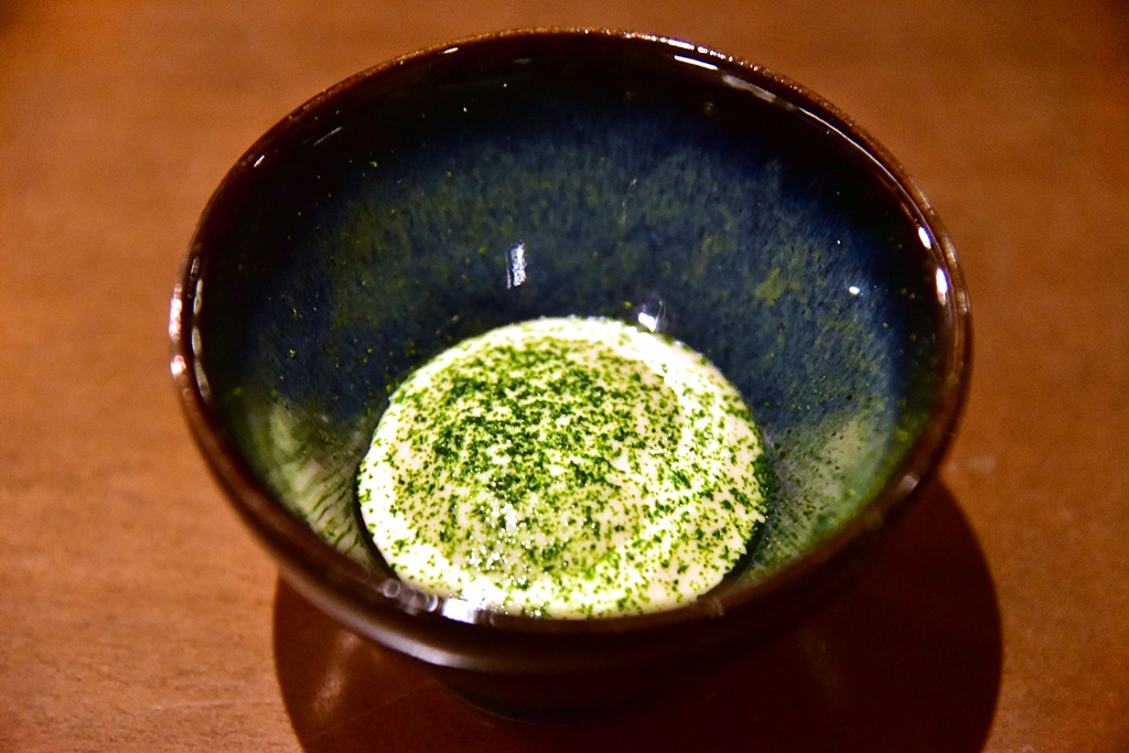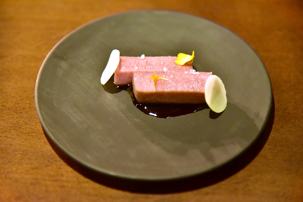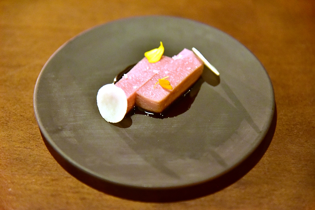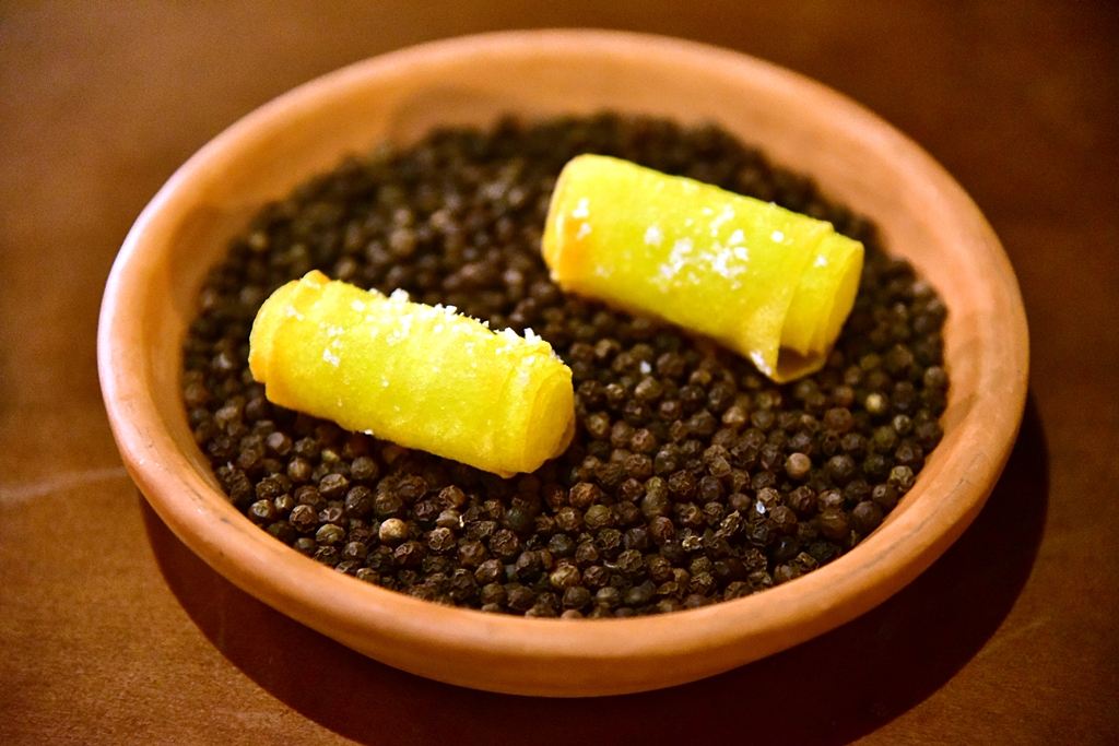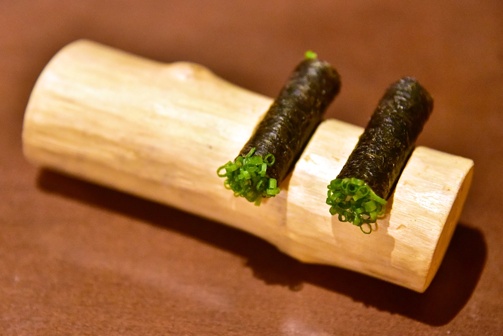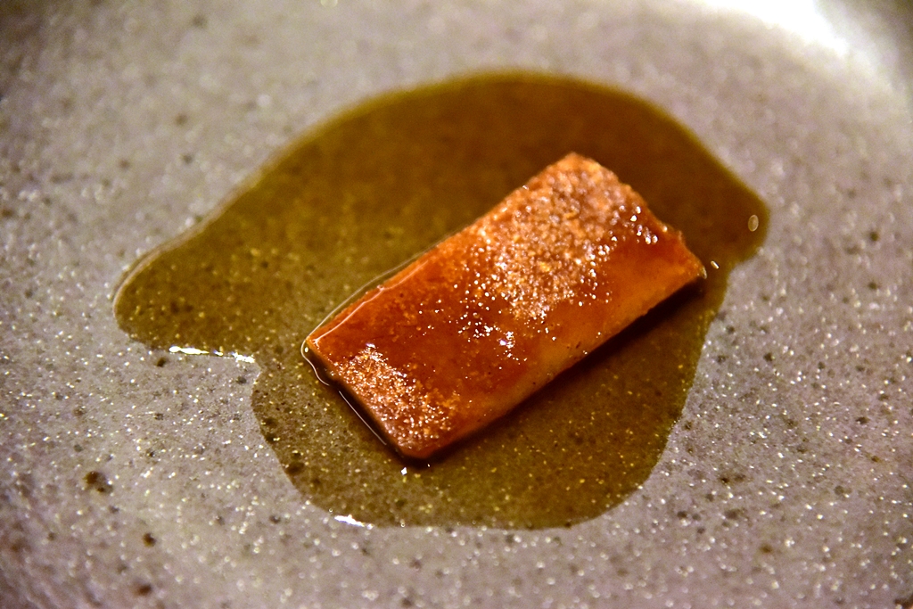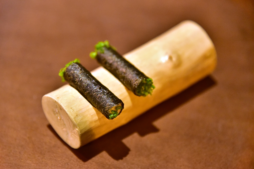 3rd course: Monk Fish Liver, nori seaweed – ตับปลามังค์ฟิชเนื้อนุ่มๆมันๆหอมๆเสิร์ฟในสาหร่ายโนริกรอบและต้นหอมซอย