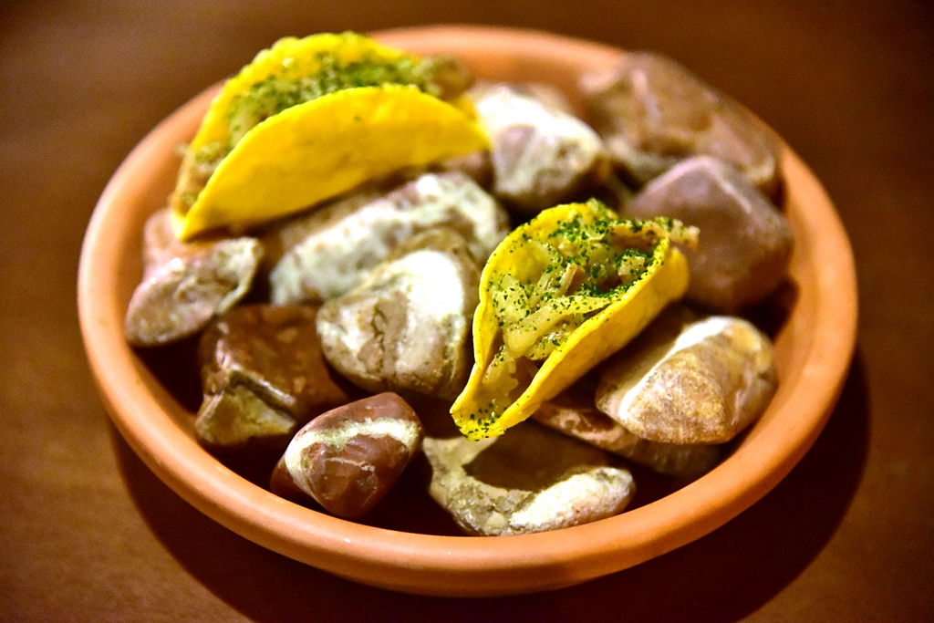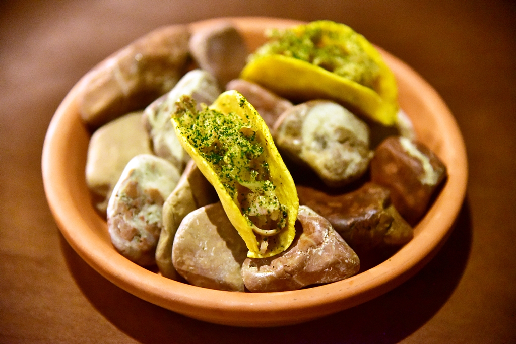 13th course: Pig’s Head Taco – ทาโก้หัวหมูเนื้อกรุบกรอบโรยหน้าด้วยโนริสาหร่าย