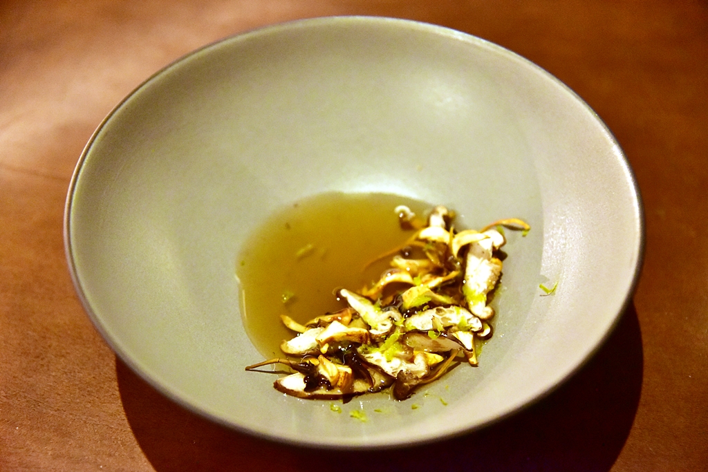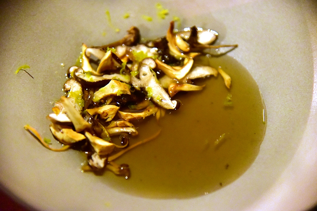 12th course: Wild Mushroom, citrus – เห็ดป่าหลากชนิดเสิร์ฟในน้ำซุปเห็ดรสกลมกล่อมโรยหน้าด้วยเปลือกส้ม