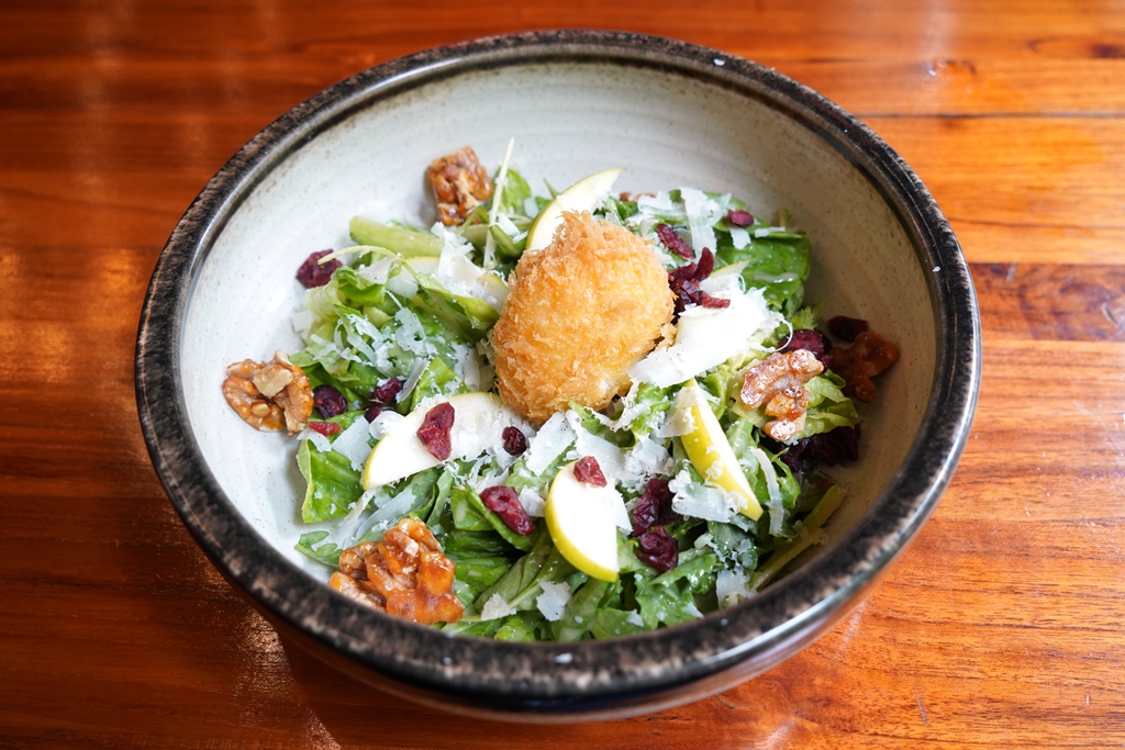 4. Asian Delicious Salad (265++ THB) [11/10] – สลัดผักเบบี้คอส ร็อกเก็ตและมิซูน่าท็อปด้วยถั่ววอลนัททอฟฟี่ แอปเปิ้ลและไข่คัตสึ