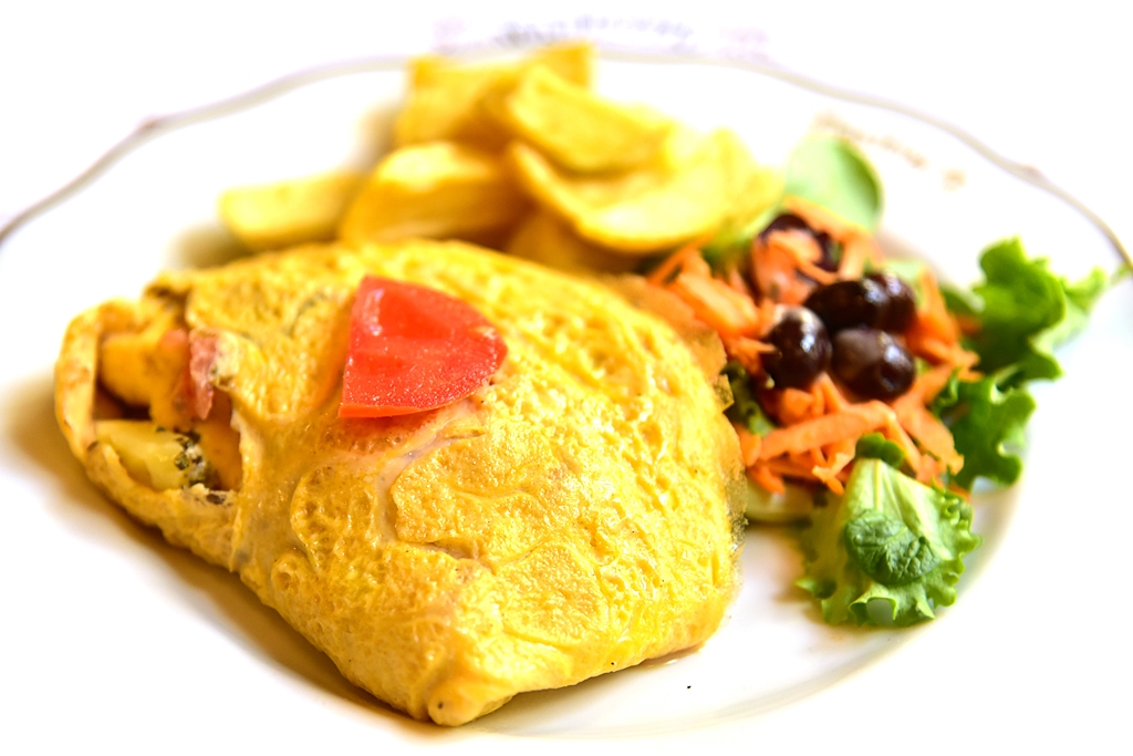 2. Omelette Elite (18.00 EURO) – ไข่เจียวสอดไส้ชีสและเห็ดเสิร์ฟคู่กับเฟรนช์ฟรายส์และสลัด
