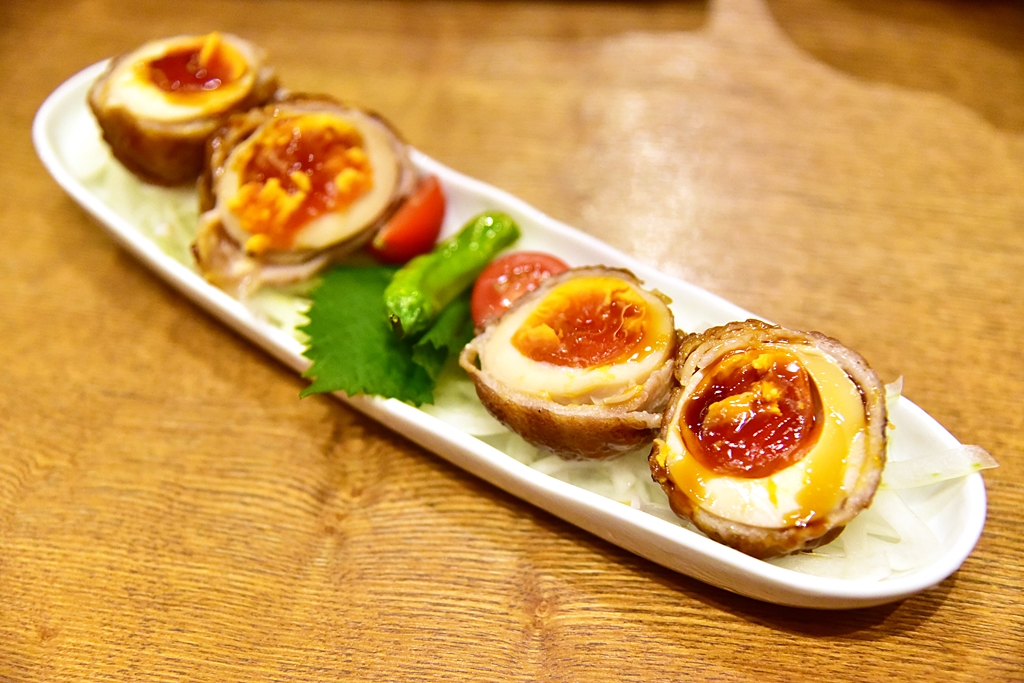 5. Pork Belly Wrapped Egg (750 Yen) – ไข่ไก่ห่อหมูสามชั้นทอดที่ด้านในยังเยิ้มฉ่ำน่าทาน