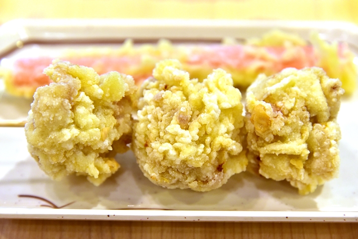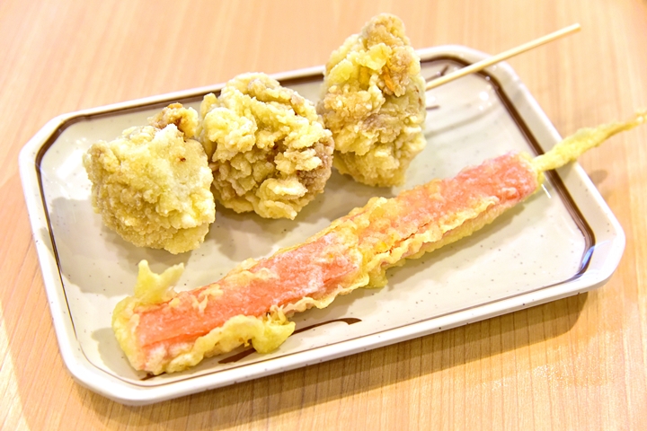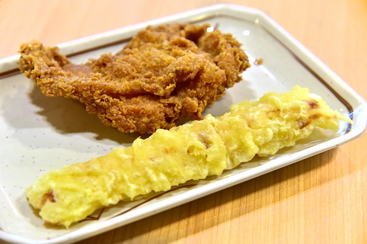 5. Karaage (39 THB) & Crab Stick Tempura (29 THB) – ไก่ทอดคาราอะเกะกับปูอัดเทมปรุะ ที่ทานเปล่าๆน่าจะห่วยมาก แต่พอทานกับอุด้งร้อนๆแล้วนี่เวิร์คเลย