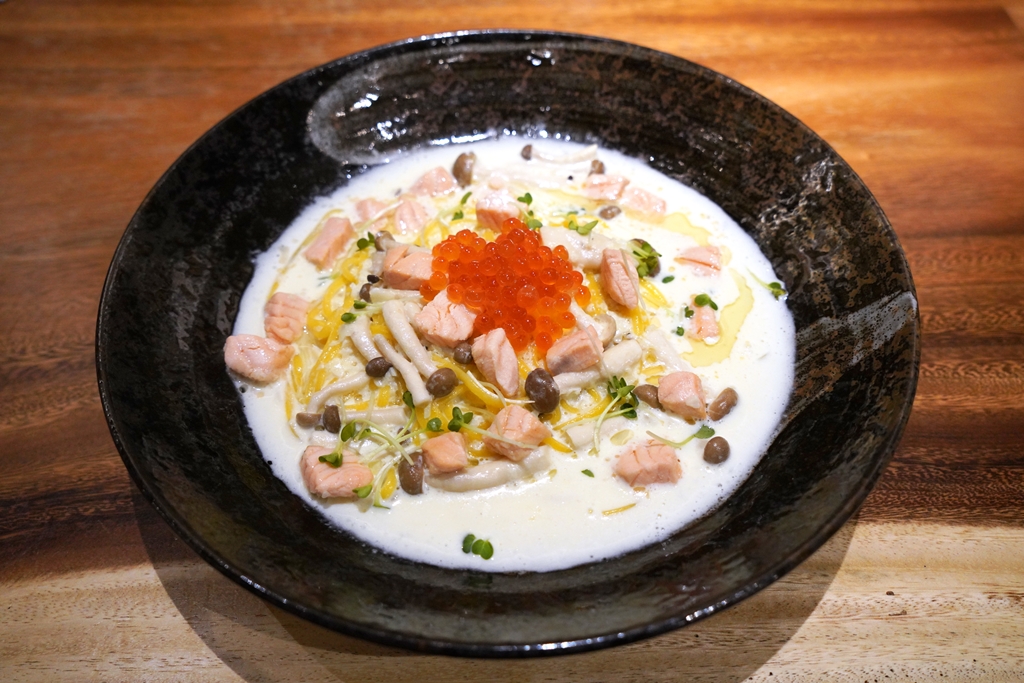 2. Salmon Ikura Cream (460++ THB) [15/20] – สปาเก็ตตี้ครีมซอสที่ปรุงรสชาติแบบเบาๆอูมามิสไตล์ญี่ปุ่นหน้าแซลม่อน ไข่ปลาแซลม่อนและเห็ดชิเมจิ