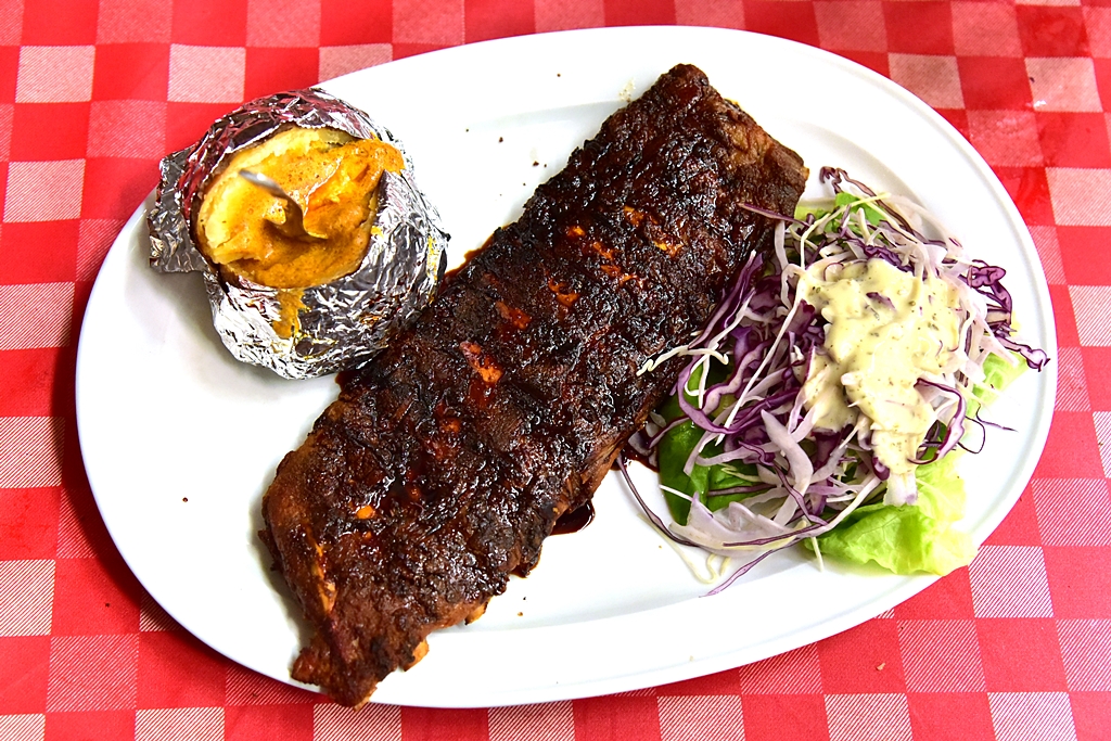6. All-you-can-eat Spare Ribs (18.25 EURO) – ซี่โครงหมูที่สามารถสั่งเติมได้ไม่อั้นเสิร์ฟคู่กับมันฝรั่งอบซอสผงกะหรี่และสลัด ตัวซี่โครงหมูย่างได้นุ่มดีมาก ซอสก็รสชาติดีเลย