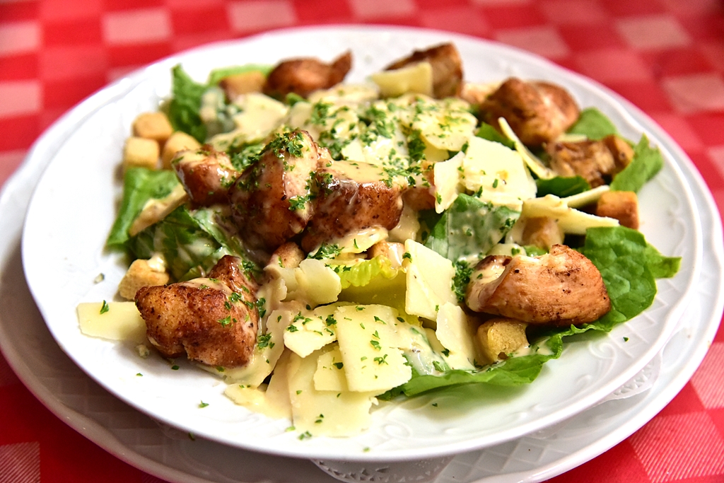 4. Caesar Salad (7.50 EURO) – ซีซาร์สลัดอกไก่ย่างพร้อมด้วยเครื่องเคียงอย่างพาร์เมซานชีสแบบจัดเต็ม อร่อย !!
