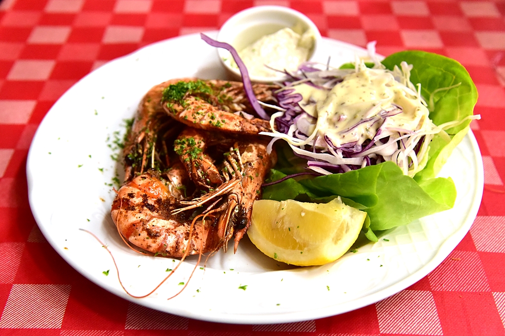 5. Grilled Prawn (12.00 EURO) – กุ้งตัวโตย่างเนื้อสดหวานปรุงรสด้วยพริกกระเทียมได้จัดจ้านมากๆ