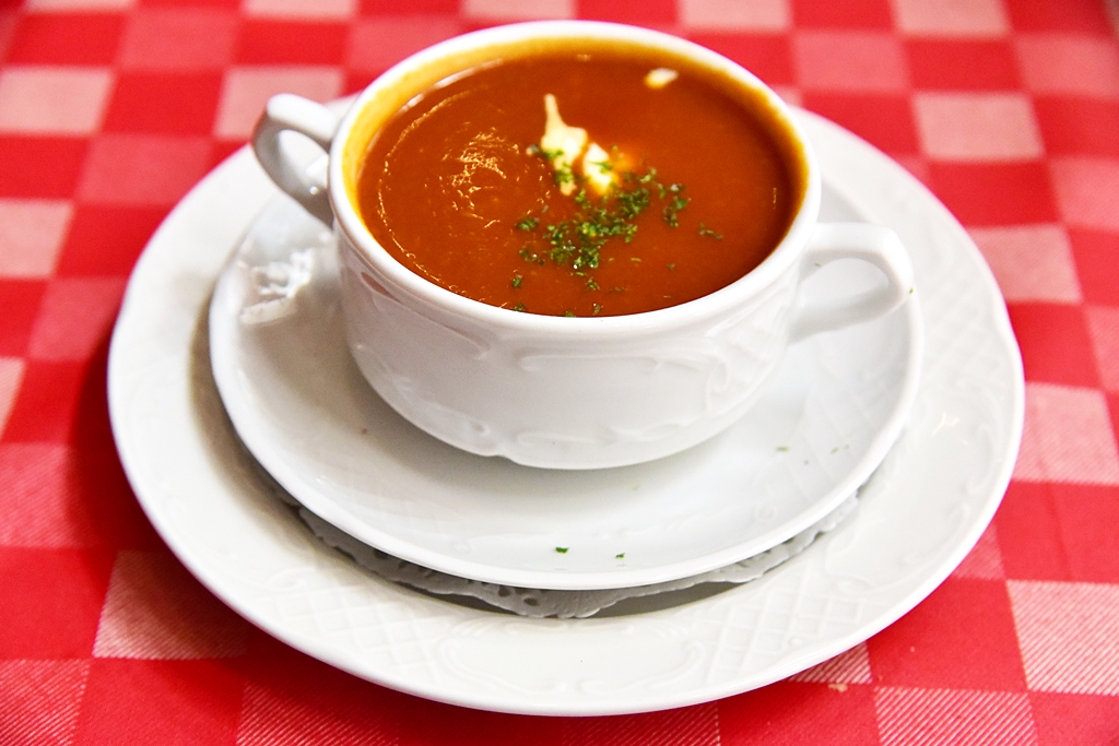 3. Tomato Soup with Bread (3.50 EURO) – ซุปมะเขือเทศกับขนมปัง รสชาติเฉยๆ ไม่แนะนำให้สั่งครับ