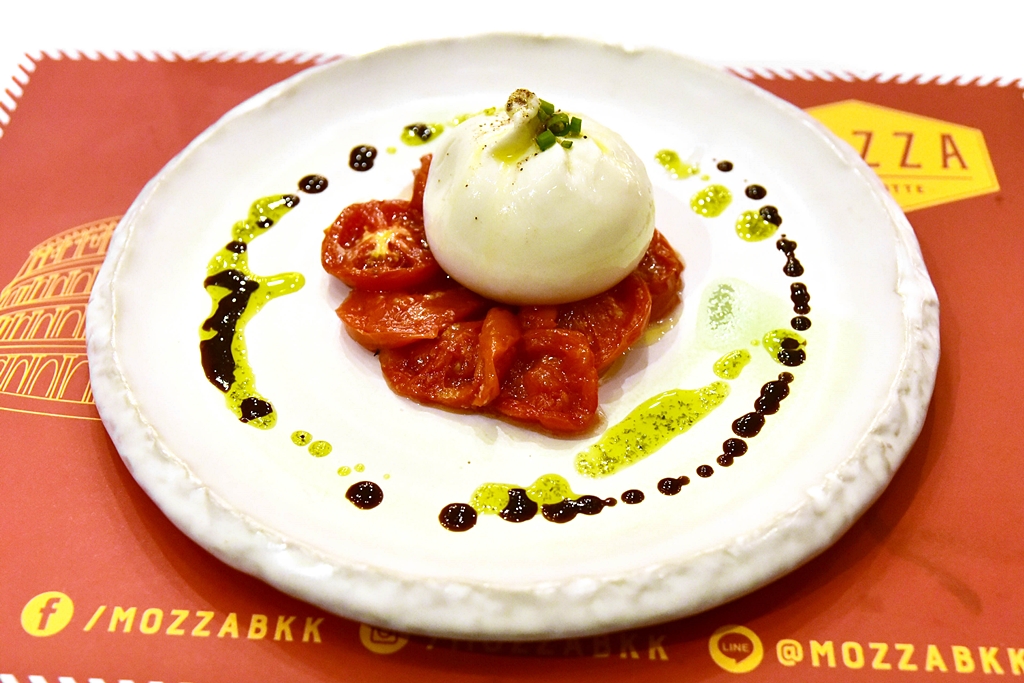1. Burrata with Tomato Confit and Balsamic Caramel (490++ THB) [14/20] – เบอร์ราต้ามอสซาเรลล่าชีสสอดไส้ stracciatella ซึ่งถือเป็นเมนูซิกเนเจอร์ของ Mozza by Cocotte ตัวชีสเบอร์ราต้าเนื้อเนียนนุ่มครีมมี่สุดๆ เสิร์ฟคู่กับมะเขือเทศกงฟีและซอสบัลซามิครสชาติเข้ากัน