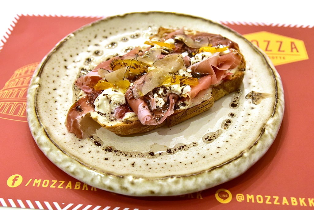 2. Truffle Bruschetta (420++ THB) [16/20] – ขนมปัง sourdough ที่อัดแน่นไปด้วยเครื่องชั้นเลิศรสเข้มข้น ทั้ง ชีส stracciatella ปาร์ม่าแฮม 24 เดือน แอพริคอตและเห็ดทรัฟเฟิล ราดด้วยน้ำมันทรัฟเฟิลหอมๆปรุงรสแบบเค็มนำ อร่อยสุดใจ !!