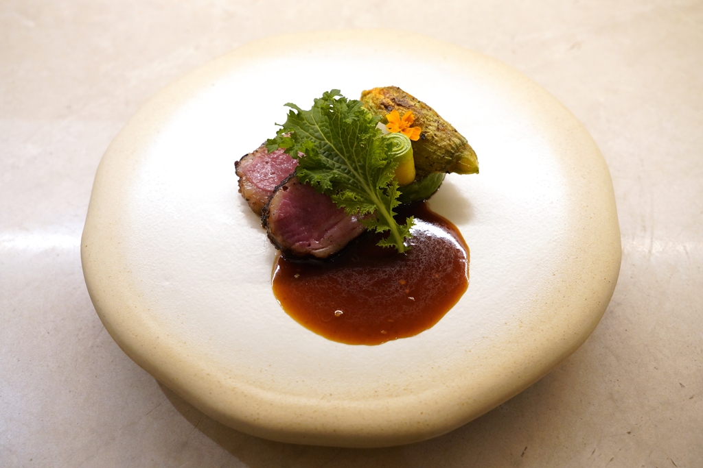 5th course : lamb saddle | Korean squash | cumin gochujang | zucchini flower [16/20] – เนื้อแกะย่างแบบถูกต้องเสิร์ฟคู่กับแตงเกาหลี ดอกซุกกินีไส้เนื้อแกะบดและซอสโคชูจังขมิ้น