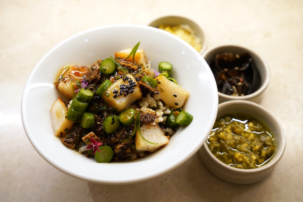 6th course : gwanja deopbap | Hokkaido scallops | morel | mushroom gravy [16/20] – ข้าวอบกับเนื้อหอยเชลล์ เห็ดมอเรลและหน่อไม้ฝรั่งเสิร์ฟคู่กับซอสเกรวี่เห็ดพร้อมด้วยผักเคียง