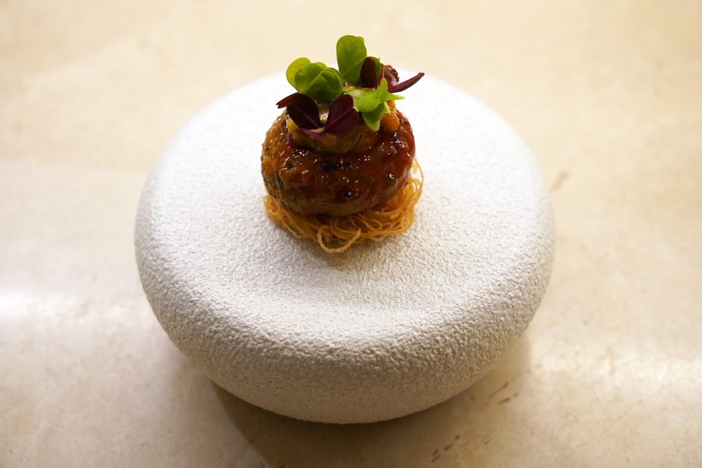 Snack #2 : nanjawanse galbi [15/20] – เนื้อเป็ดปั้นเป็นก้อนย่างกับซอสโคชูจังเสิร์ฟบนบะหมี่กรอบ