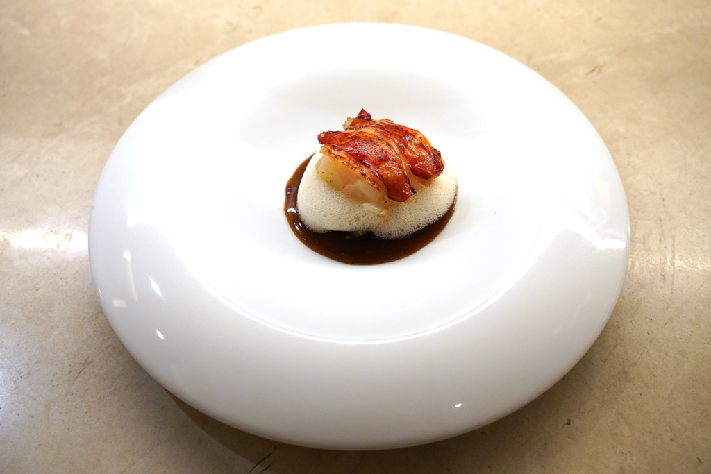 4th course : lobster | jjamppong | napa cabbage | white radish [16/20] – กุ้งล็อบสเตอร์เนื้อเด้งฉ่ำเสิร์ฟคู่กับผักกะหล่ำปลีและเรดิชในซอสซีฟู้ดรสเผ็ดสไตล์จีนเกาหลีและโฟมกระเทียม
