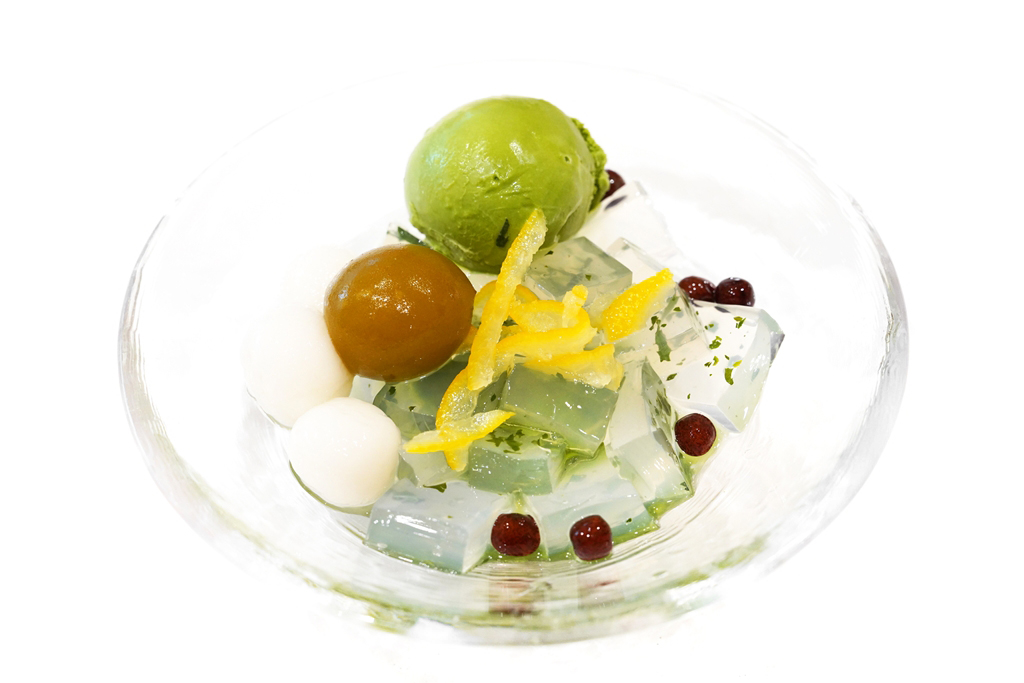 3. Hikari no Anmitsu (1,600 JPY) [15/20] – เจลลี่ใบชาเทะฉะเนื้อเด้งเบาเสิร์ฟคู่กับถั่วบดปรุงรสชาเขียว ไอศกรีมชาเขียว บ๊วยดองและโมจิ