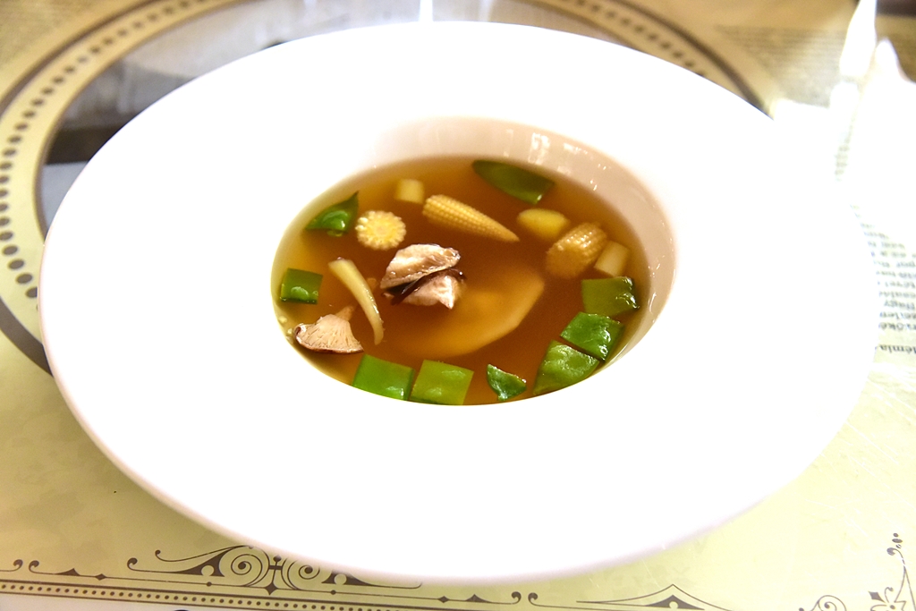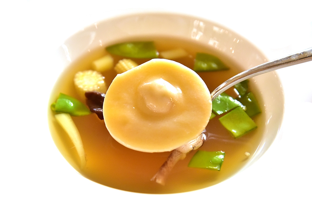 2. Chicken Soup with Chicken Ravioli and Vegetables (2,950 HUF) – ซุปไก่รสเข้มข้นเสิร์ฟคู่กับราวิโอลีเนื้อไก่และผัก