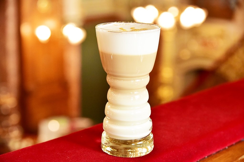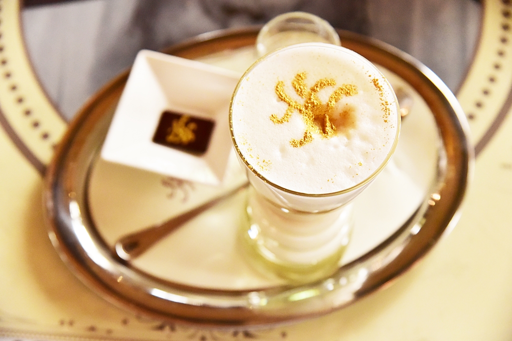 5. New York Latte Macchiato with 24 Carat Gold (3,100 HUF) – ลาเต้มัคคีอาโต้โรยหน้าด้วยทองคำแท้เสิร์ฟคู่กับช็อกโกแลต