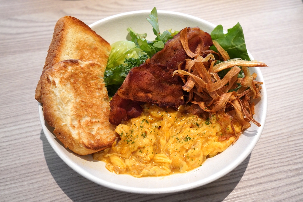 4. Jap Fat Boy (280++ THB) [14/20] – เซ็ตไข่คนซอสแกงกะหรี่เสิร์ฟคู่กับเบค่อน โกโบกรอบ โทสต์ขนมปังยูดาเนะและสลัดผัก