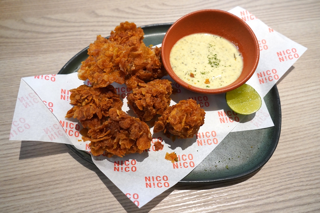 2. Cornflake Chicken (180++ THB) [14/20] – ไก่เคลือบคอร์นเฟลคทอดกรุบกรอบเสิร์ฟคู่กับซอสมาโยยูสุโคโชและพริกฮาลาปิญโญ่