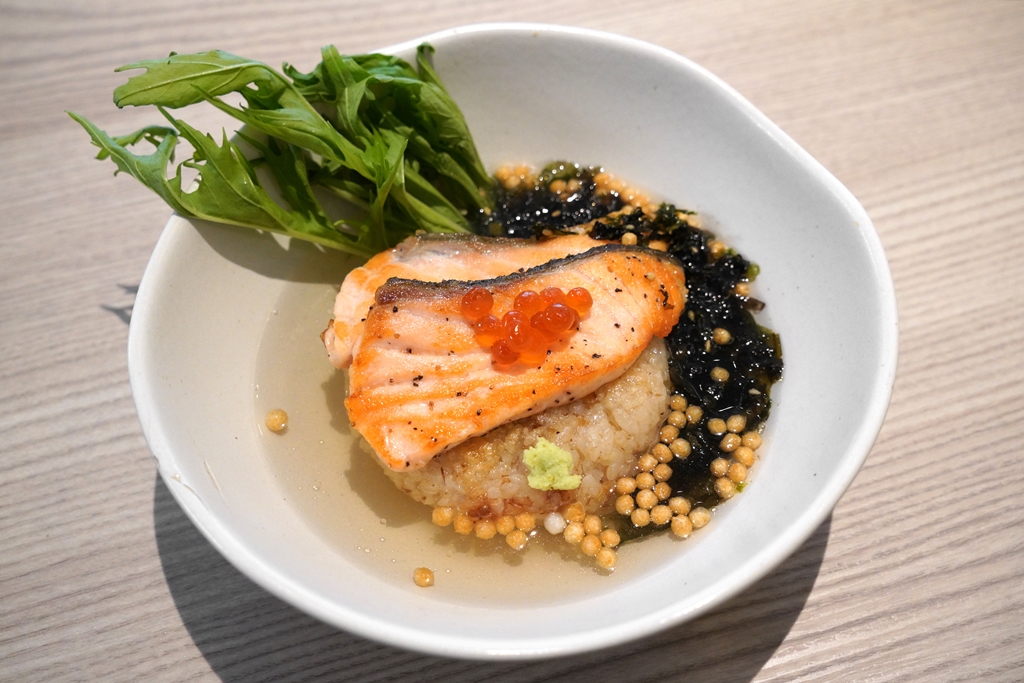 5. Salmon Ochazuke (320++ THB) [13/20] – โอนิกิริข้าวดอยย่างเสิร์ฟคู่กับปลาแซลม่อน ข้าวพองและซุปดาชิชาเขียว