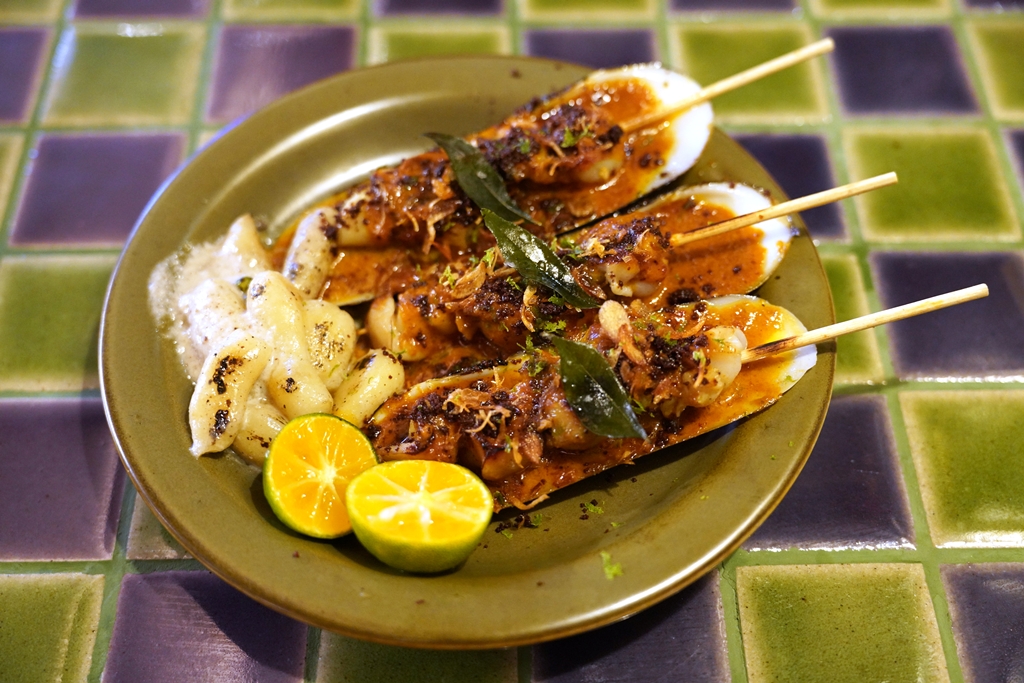 4. Grilled Bamboo Clams with Southern Golay Sauce on Skewers (480++ THB) [15/20] – หอยไม้ไผ่เนื้อเด้งราดซอสกอและเสียบไม้ย่าง