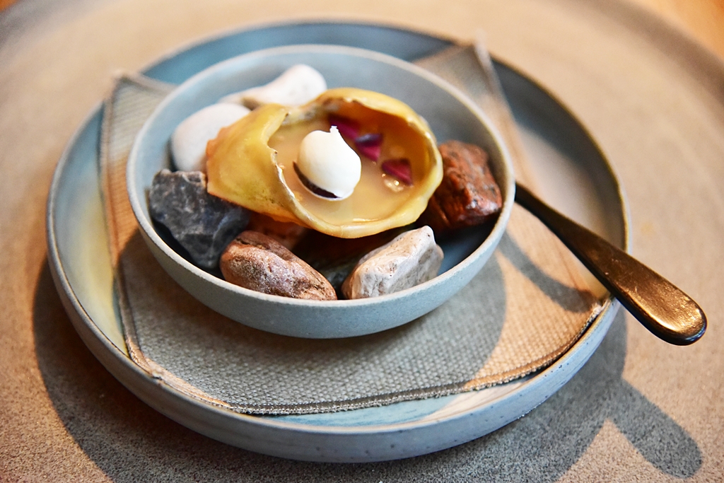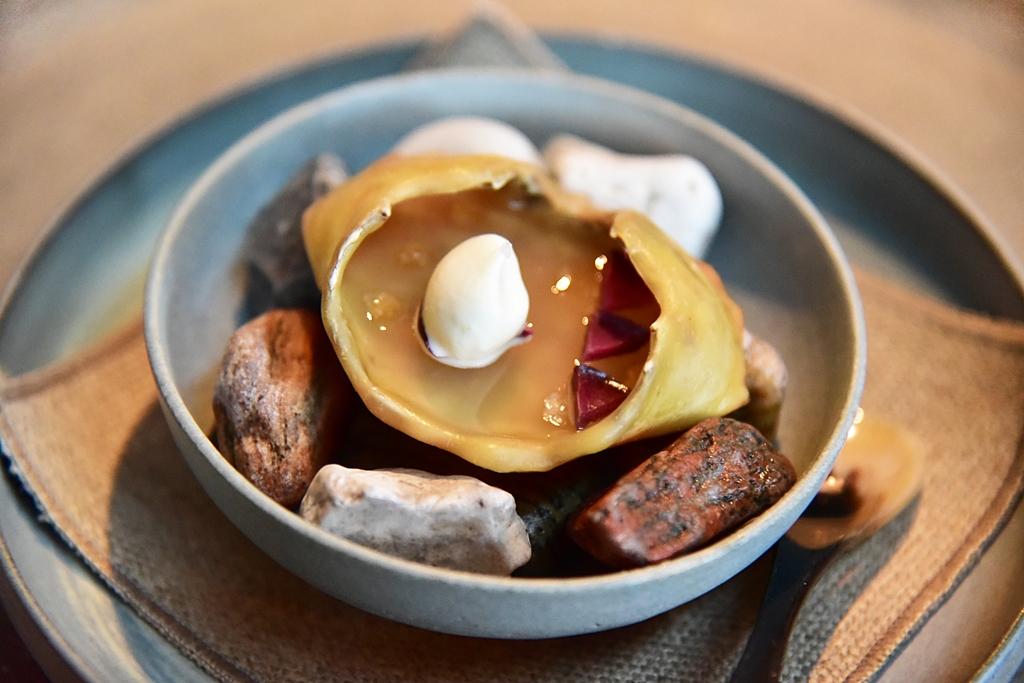 16th course: Cardamom Scented Sea Star – ปลาดาวที่ทำมาจากคาราเมลและคาร์ดามอม เป็นขนมหวานที่เข้ากับบรรยากาศมาก