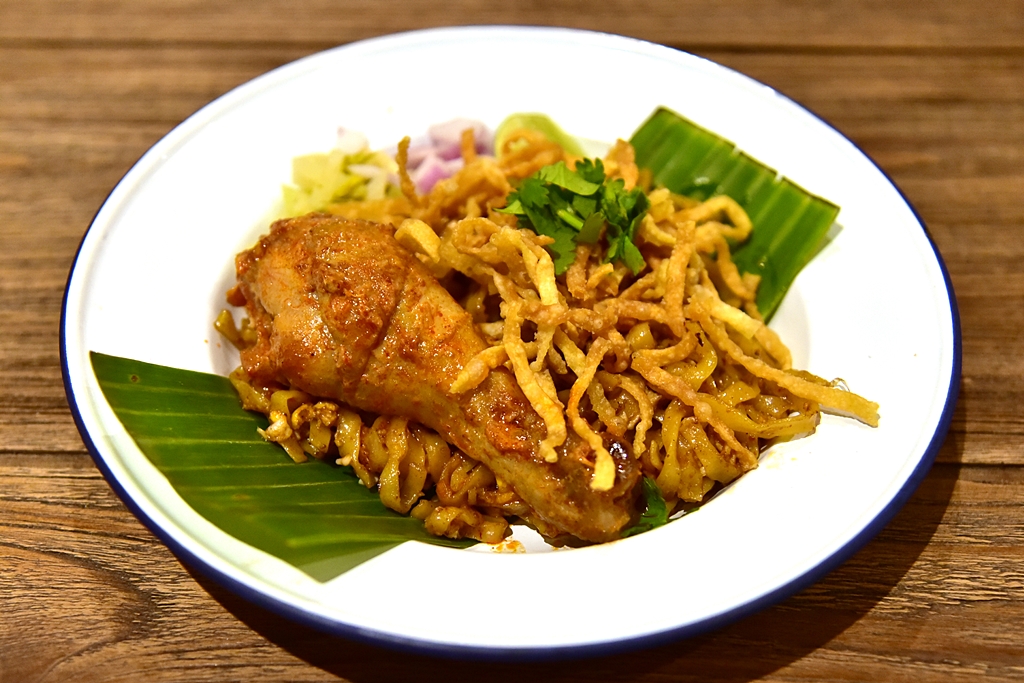 2. Stir-fried Chicken Khaosoi with Egg (89++ THB) – ข้าวซอยคั่วแห้งกับไข่เสิร์ฟคู่กับน่องไก่