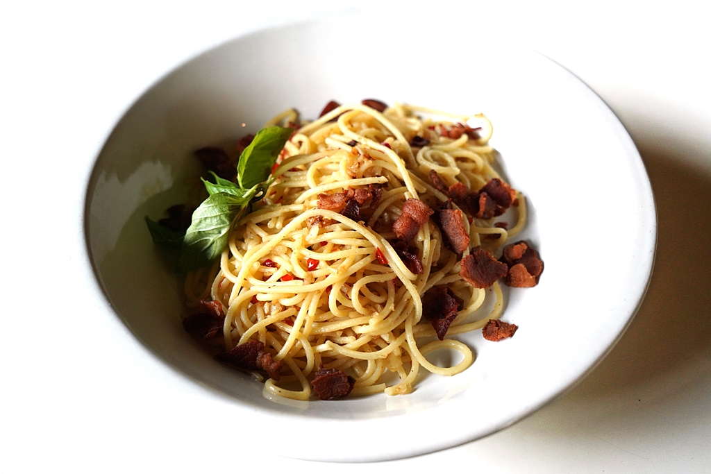 4. Spaghetti Aglio Olio (445++ THB) [12/20] – สปาเก็ตตี้ผัดพริกกระเทียมและเบค่อนที่ทำรสชาติแบบไทยๆหน่อย ตัวเส้นจะไม่ได้ al dente แต่รสชาติก็กลมกล่อม ทานง่าย