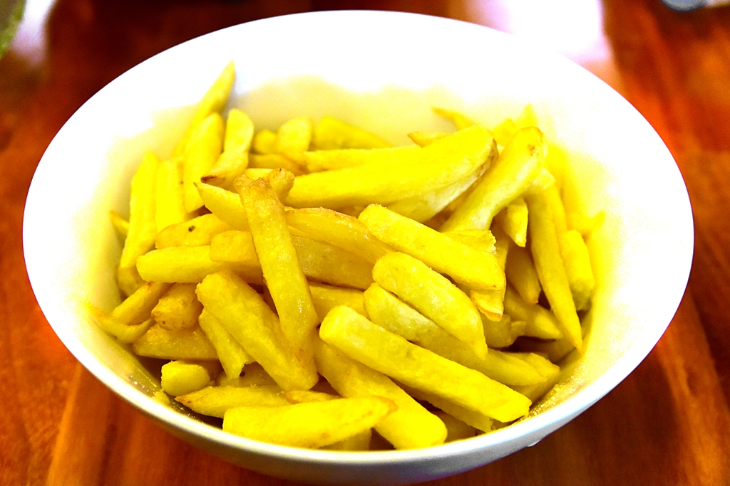 2. Grilled Boneless Chicken with Delicia Salad (32.90 Sol) – เนื้อไก่ย่างไร้กระดูกทั้งตัวปรุงรสแบบเผ็ดจัดจ้านโรยหน้าด้วยพริกทานคู่กับเฟรนช์ฟรายส์และสลัด